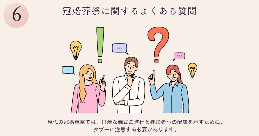 冠婚葬祭に関するよくある質問に答えます。不明な点がある場合は周囲に相談したり、情報を調べたりして解決しましょう。