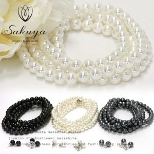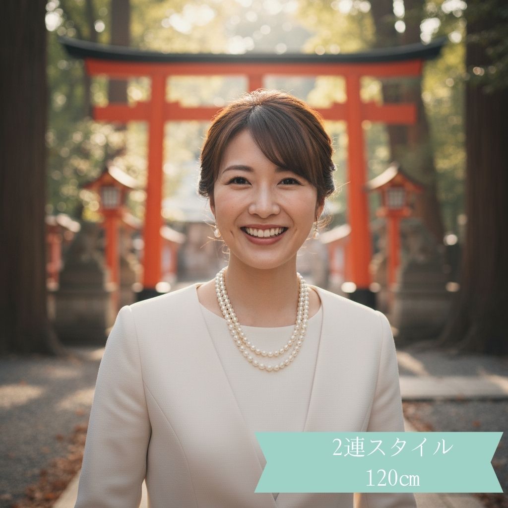 ② ロングパールの2連スタイルなら、動きのある美しさと品格を両立できます。