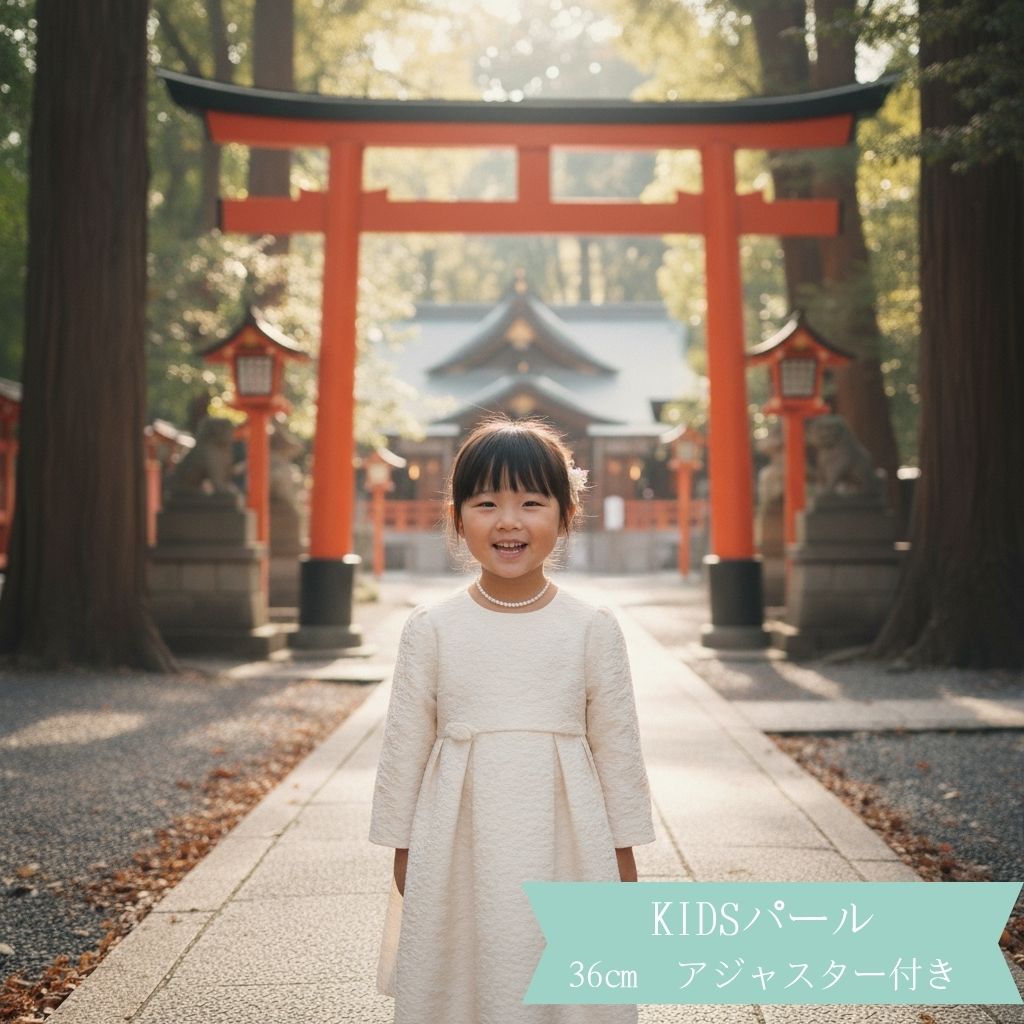 キッズ用は短めの一連や、安全に配慮した貝パールで軽やかに。子どもの着物やドレスにもなじむ優しいデザインです。