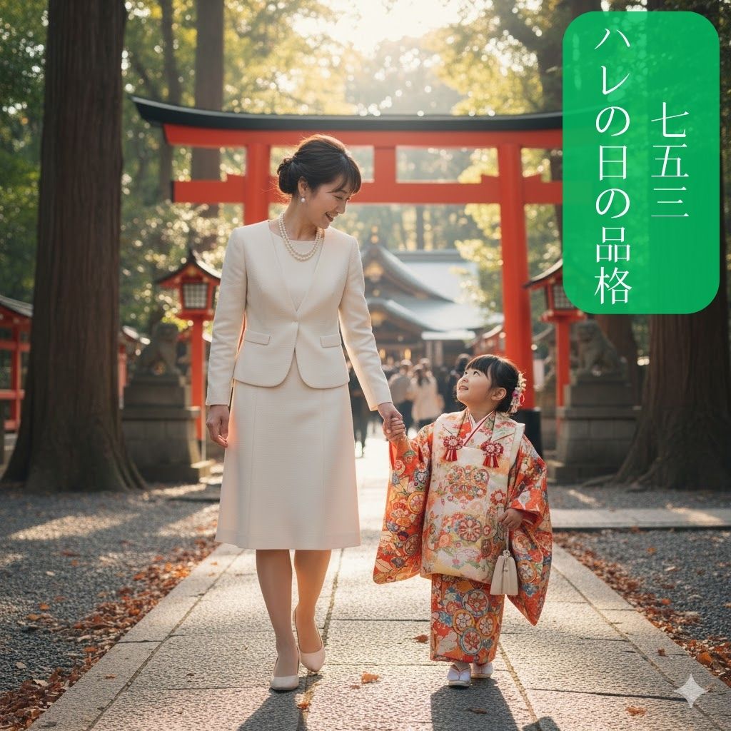 ①🎀 七五三は、お子様が主役の日。母親の装いは、控えめで上品な佇まいが理想です。